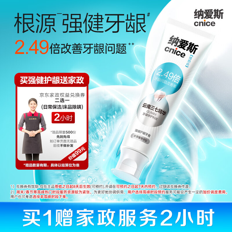纳爱斯牙膏合集:任选1款仅需59元,下单再反10元超市卡并赠家政券