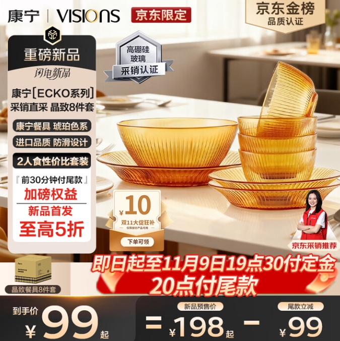 69元!康宁高硼硅耐热玻璃碗8件套礼盒