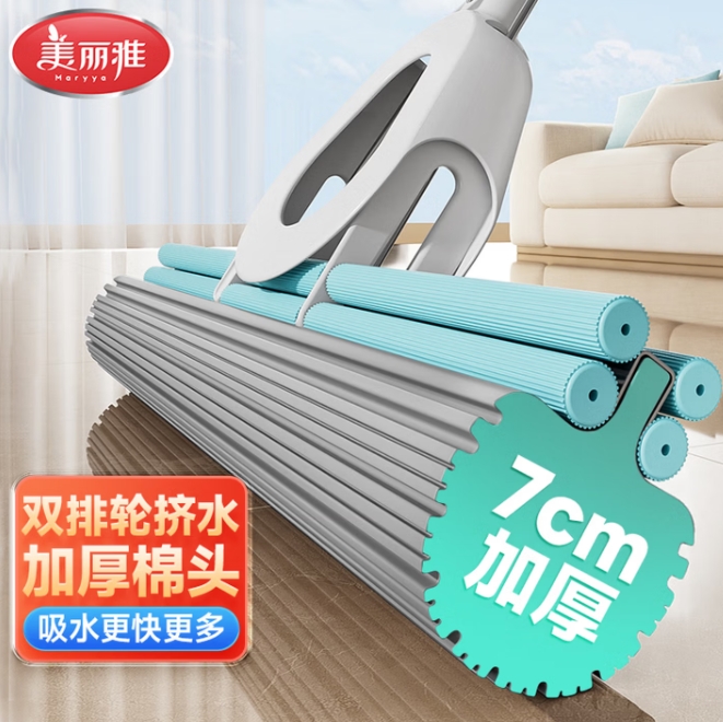 9.68元!美丽雅 吸水海绵拖把 28cm