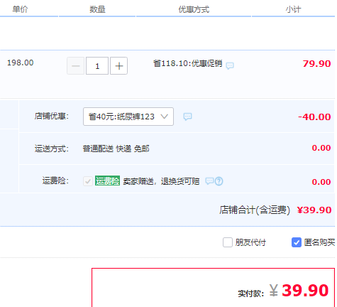 现售价79.9元,领40元券,实付39.9元包邮,S70-XXXXL32片尺码齐全,下单备注尺码;