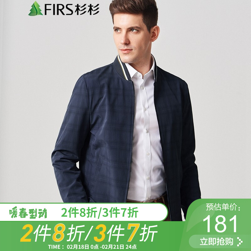 杉杉 夹克男 春季新款商务休闲男士外套格子棒球领简约舒适上衣 FDJ211265103 FDJ211265103藏青色 180