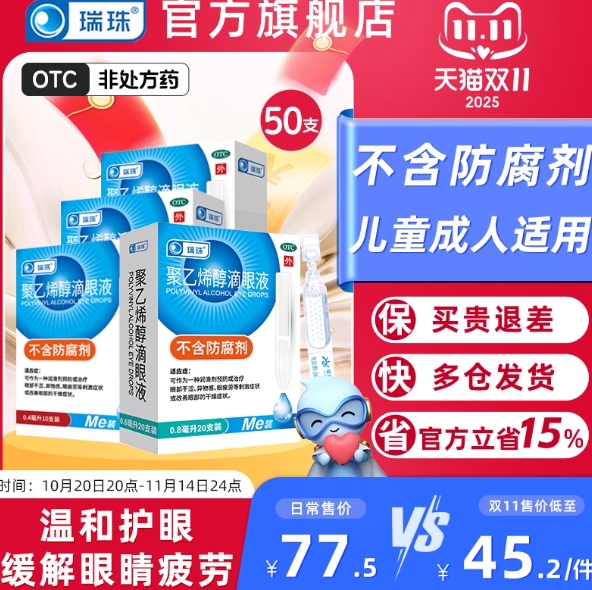 19.8元包邮!瑞珠聚乙烯醇滴眼液50支