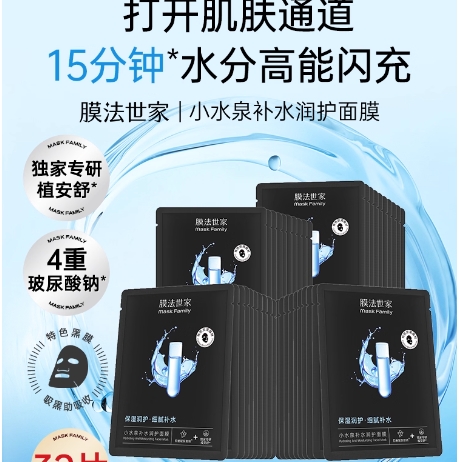 46.7元包邮!膜法世家水泉黑面膜玻尿酸32片