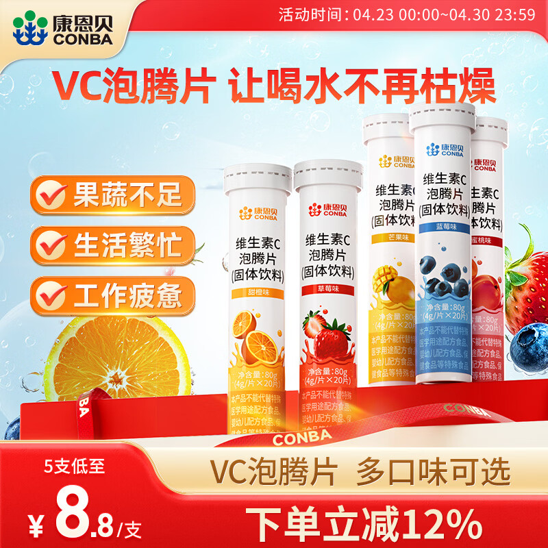 康恩贝维生素C泡腾片5支装,到手价37.9元