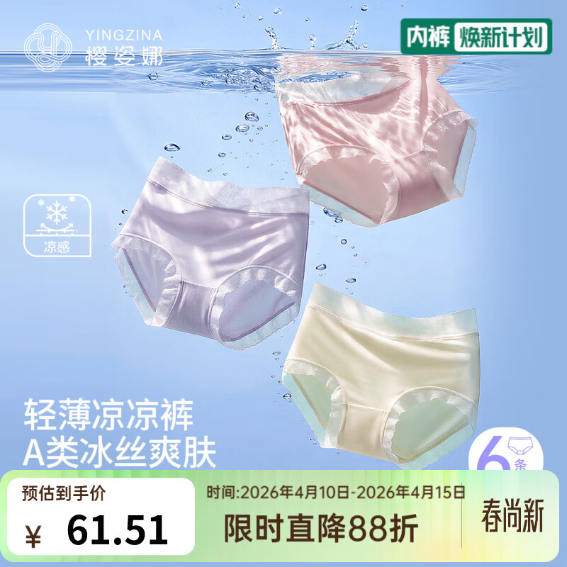 樱姿娜桑蚕丝纯棉无痕女内裤6条装,最终到手价34.9元