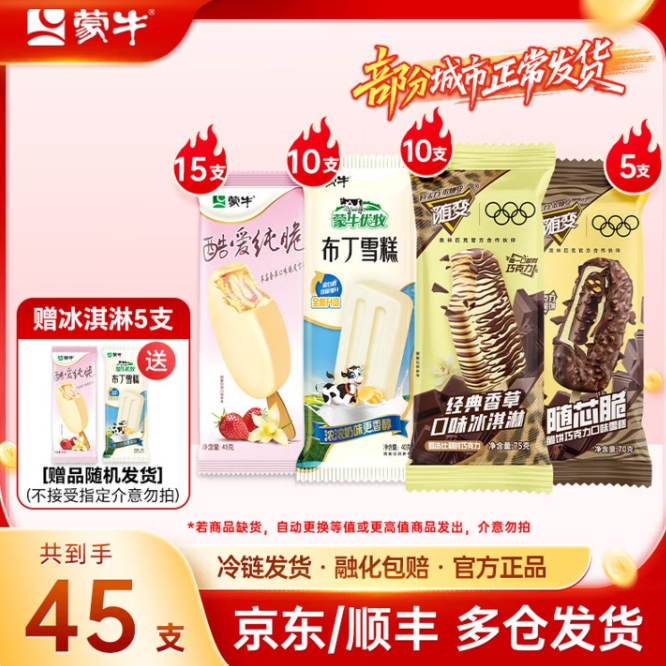 59.9元包邮!蒙牛 随变经典香草随芯脆冰淇淋组合装共45支