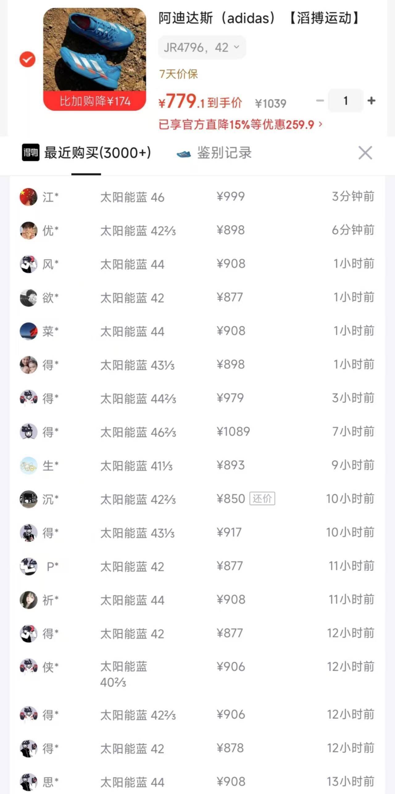 阿迪达斯Adios Pro 4太阳能蓝跑鞋到手779元