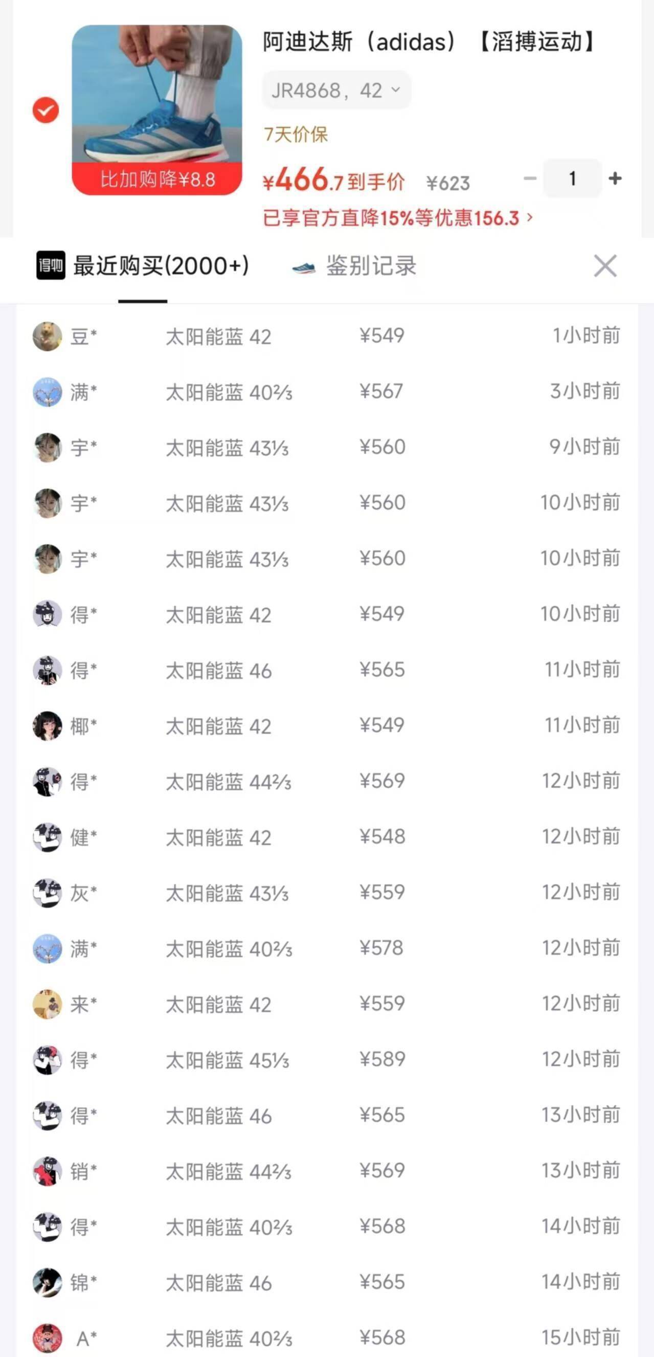 阿迪达斯波士顿13太阳能蓝,到手价466元