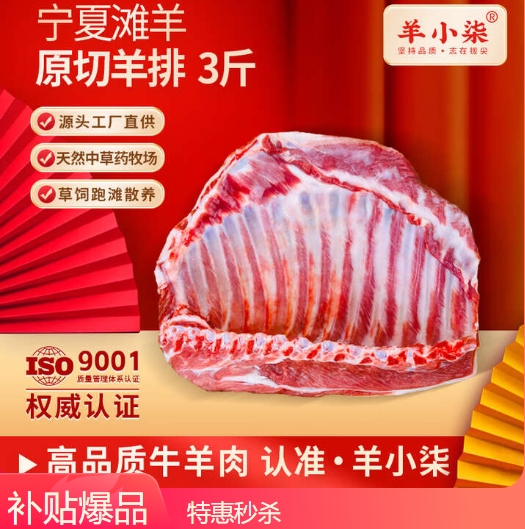 79元包邮!羊小柒 原切羔羊肋排1500g