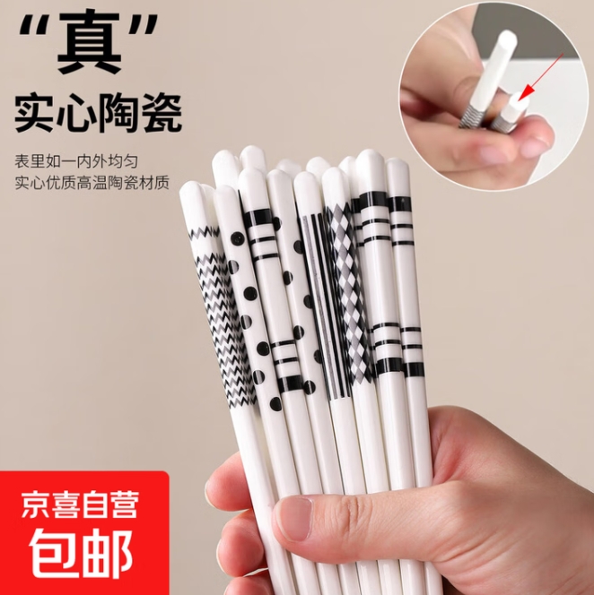 7.9元包邮!赫本风·陶瓷防滑筷子5双