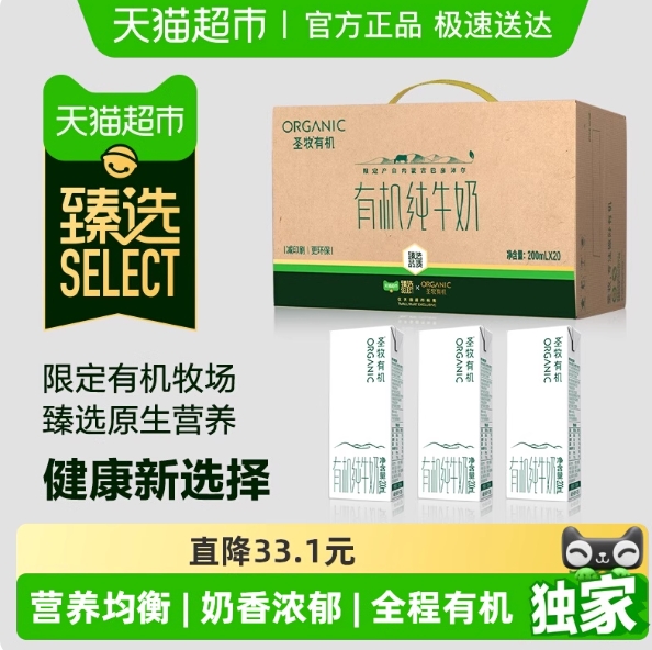 29.9元包邮!圣牧有机 纯牛奶20盒