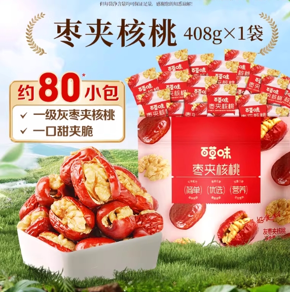 13.6元包邮!百草味 红枣夹核桃礼盒408g
