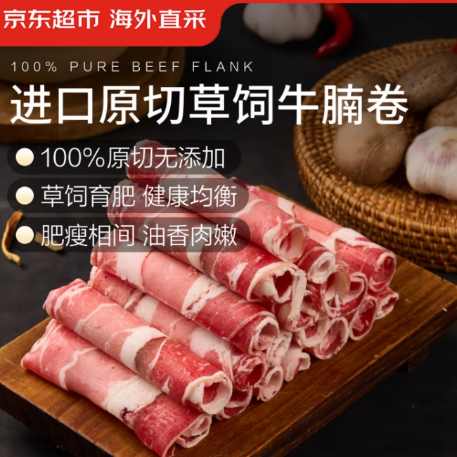 57.6元包邮!京东超市 海外直采 进口原切牛腩肥牛卷1kg