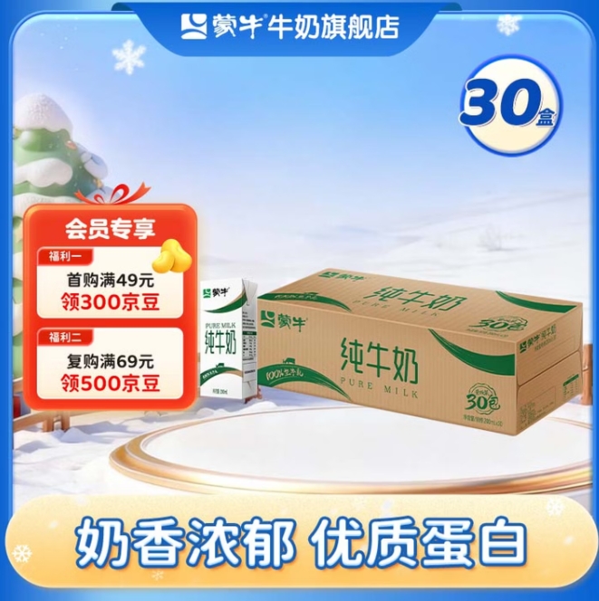 37.9元包邮!蒙牛 全脂纯牛奶200ml×30盒/箱