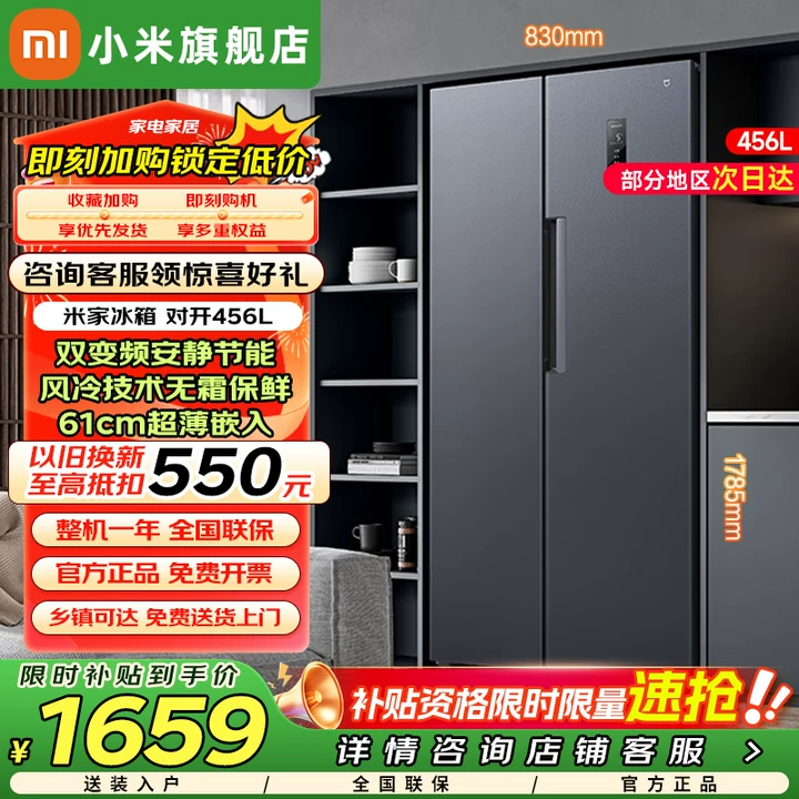 小米米家冰箱456L对开门,到手价仅需1699元享8折优惠