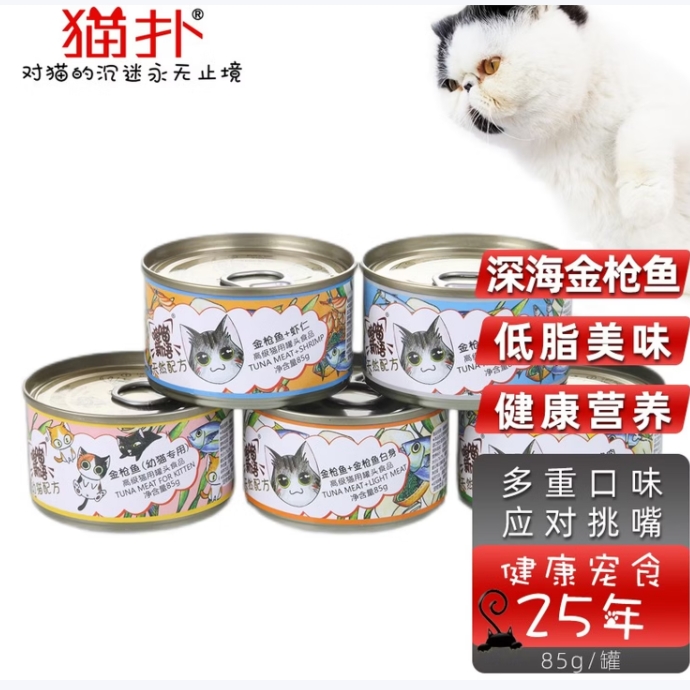 109元包邮!猫扑 喵喵新语 猫罐头猫零食 猫湿粮 箱装85g×24罐 金枪鱼+金枪鱼白身