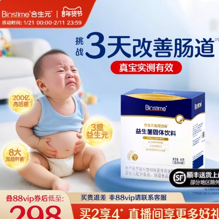 180元/件!合生元益生菌官方第二代超金菌30袋*2件
