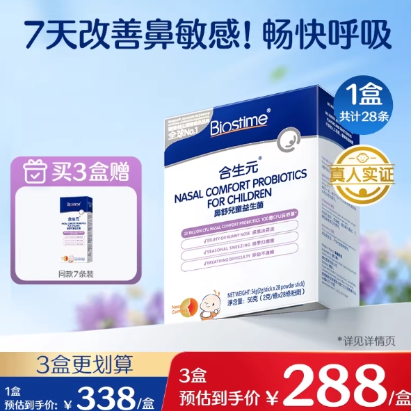 244元/盒!合生元小鼻舒婴幼儿童益生菌28袋*2盒