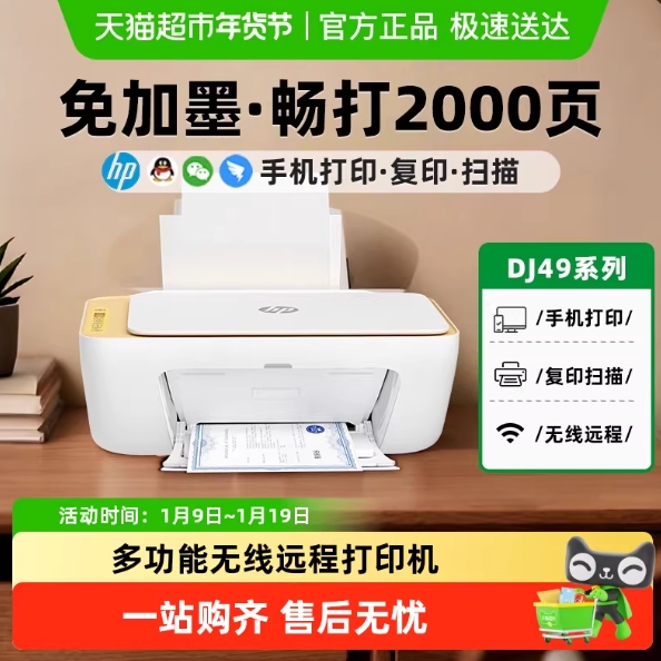 344元包邮!惠普 无线家用彩色喷墨打印机