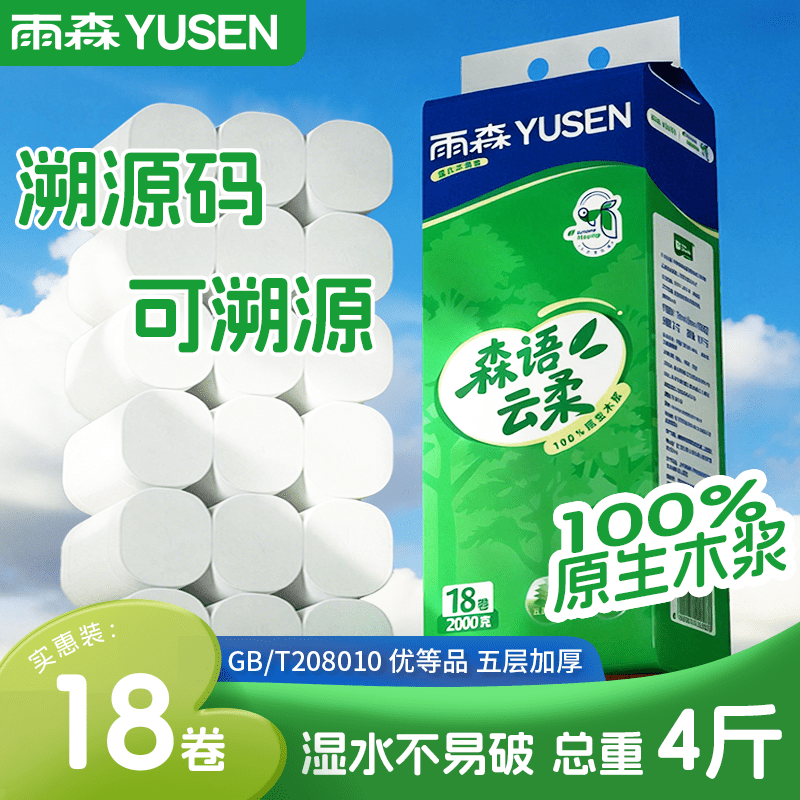 【15.99元抢】雨森5层木浆卷纸18卷装,柔软舒适居家必备!