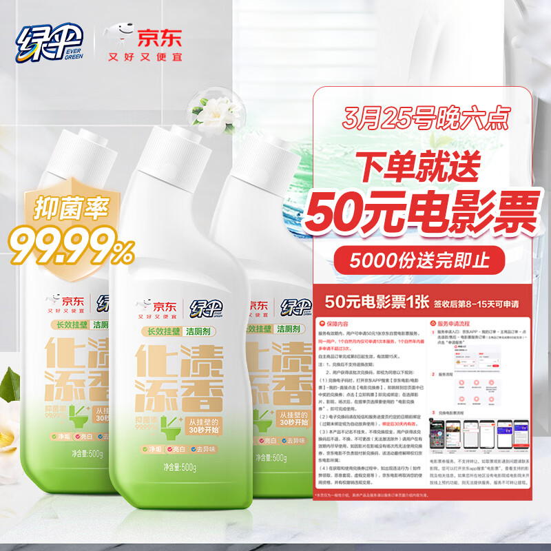 绿伞长效挂壁洁厕灵500g*3瓶Plus价49.9元+赠电影票