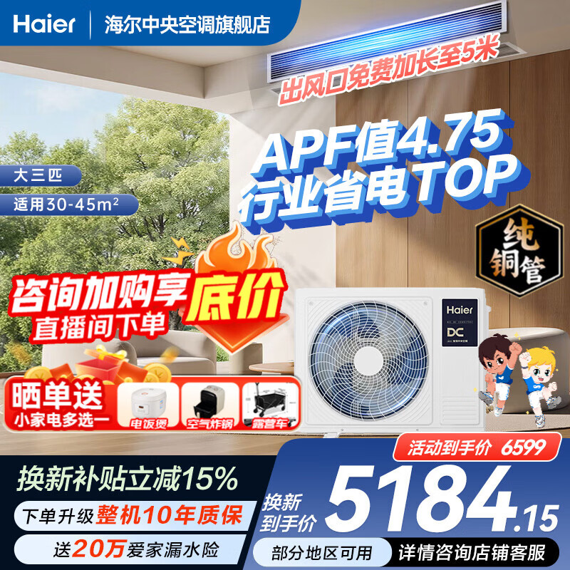 海尔净省电Plus大3匹风管机到手价6098.99元
