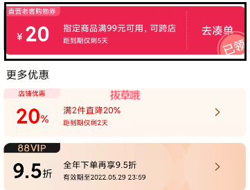 现售价168元,领130元券,移动端价格下方领老客99-20购物券(亲测俩号都有),实付18元包邮,叠加88VIP可以17.1元包邮,上方两款同价,单独拍下(不要一起拍);