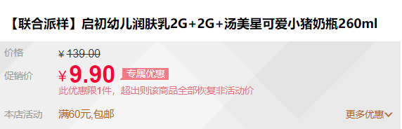 推荐:启初 幼儿润肤乳2G+2G+汤美星可爱小猪奶瓶260ml