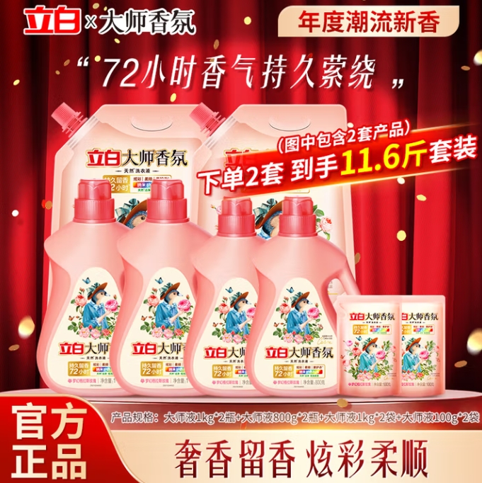 49.9元包邮!立白·大师香氛洗衣液11.6斤