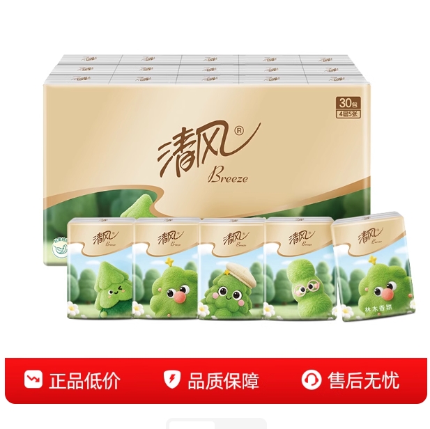 5.9元!清风手帕纸30包