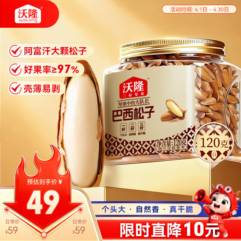 沃隆手剥松子120g罐装 凑单后仅需12.93元