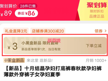 现售价89元,领20元券,凑单2件7.5折优惠,叠加页面3元小黑盒礼金,一起付款,折合打底裤实付43.75元到手;