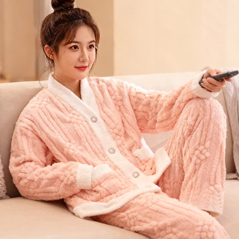降20!加厚舒棉绒开衫睡衣套装 19.9元包邮!