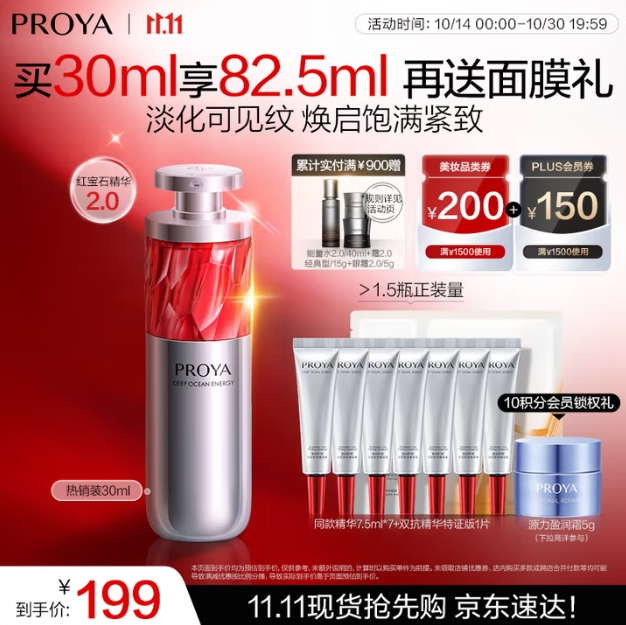 139元!珀莱雅红宝石精华 30ml+贈同窾52.5ml