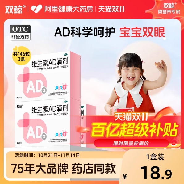 32.9元包邮!双鲸 48粒 x 2盒 +1盒双鲸 维生素AD滴剂(胶囊型) 50粒/盒