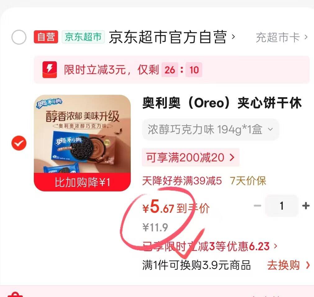 奥利奥饼干194g仅1元!京东零食大促满79减15叠加享折上折