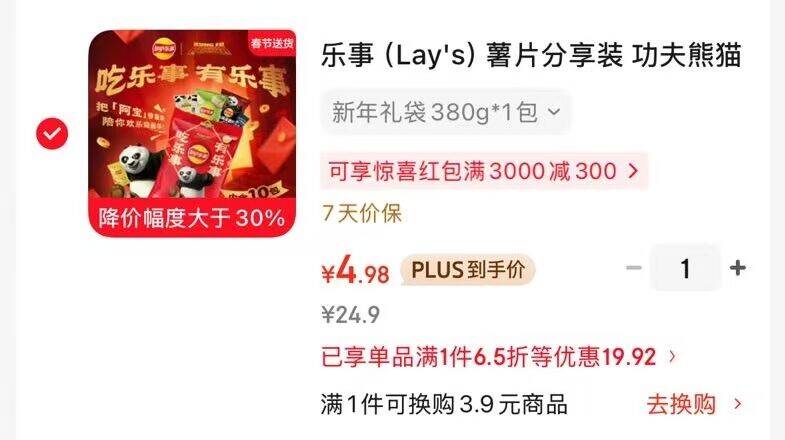乐事薯片380g最终到手价0-2元!京东零食大促限时抢