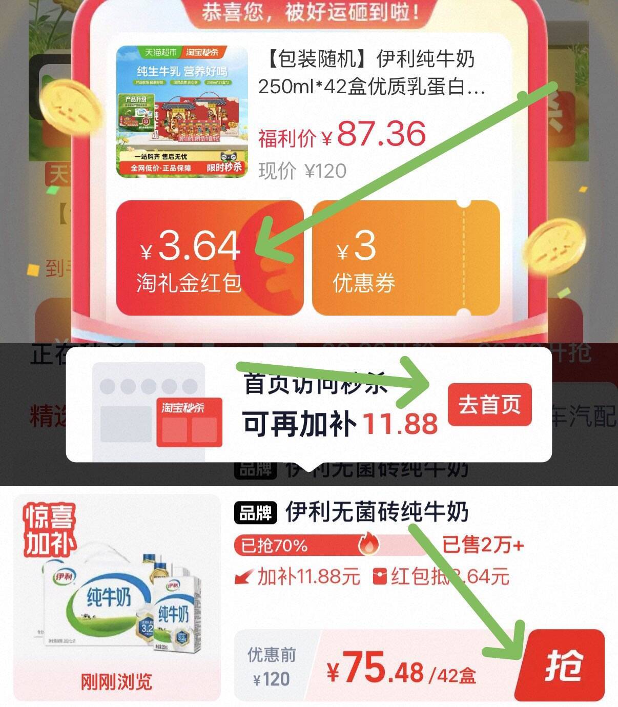 伊利纯牛奶42盒装 最终到手价70元