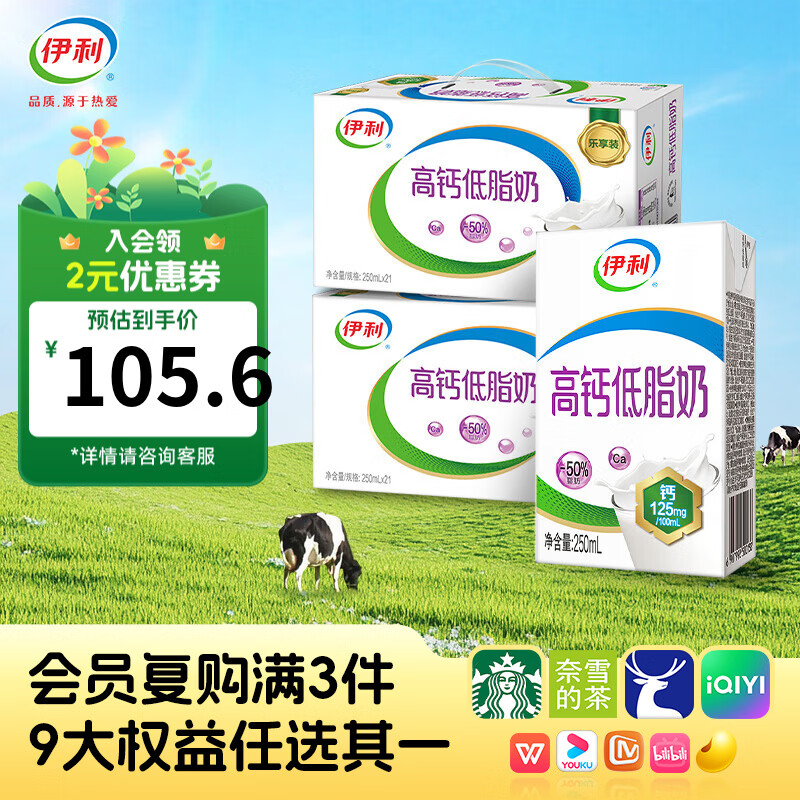 伊利高钙低脂牛奶250ml*42盒 到手79.2元