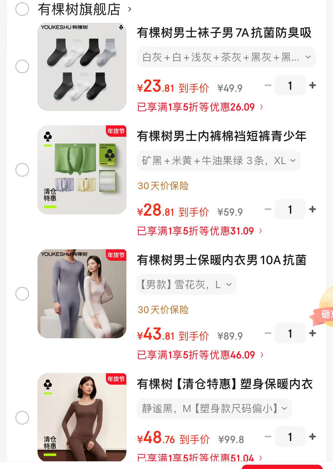 有棵树5折补贴狂欢!男士红运袜子5双仅19.9元起