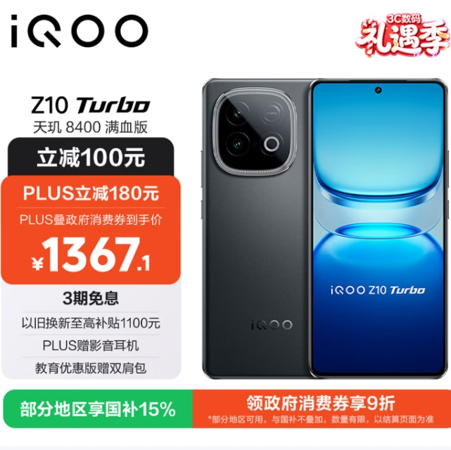 1248元包邮!iQOO Z10 Turbo 5G手机 12GB+256GB 星穹黑