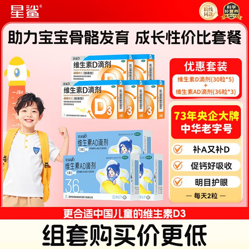 星鲨维生素D/AD滴剂凑单到手118.3元,折合0.4元/粒