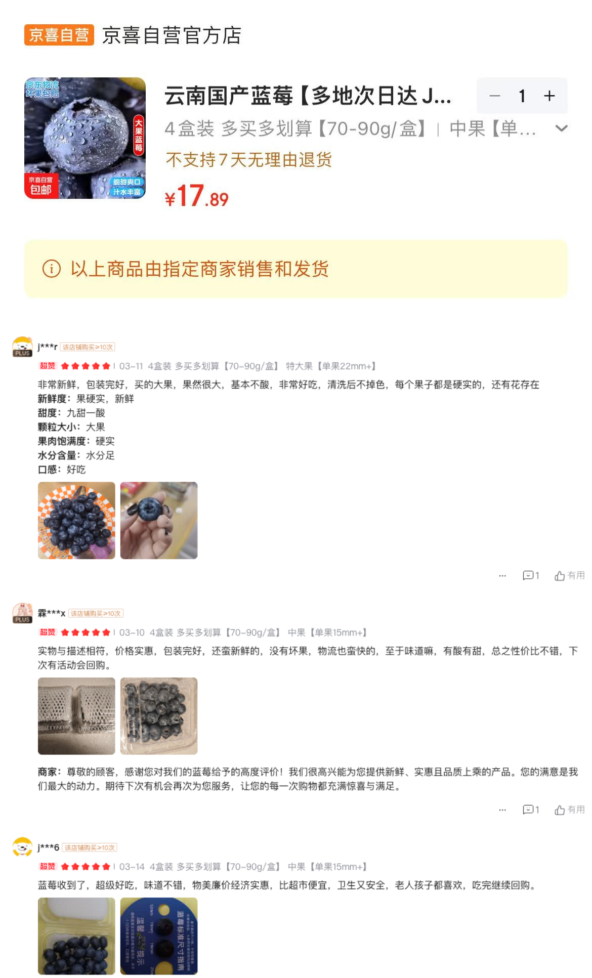 京喜云南蓝莓4盒到手17.9元?单果15mm+花青素满满