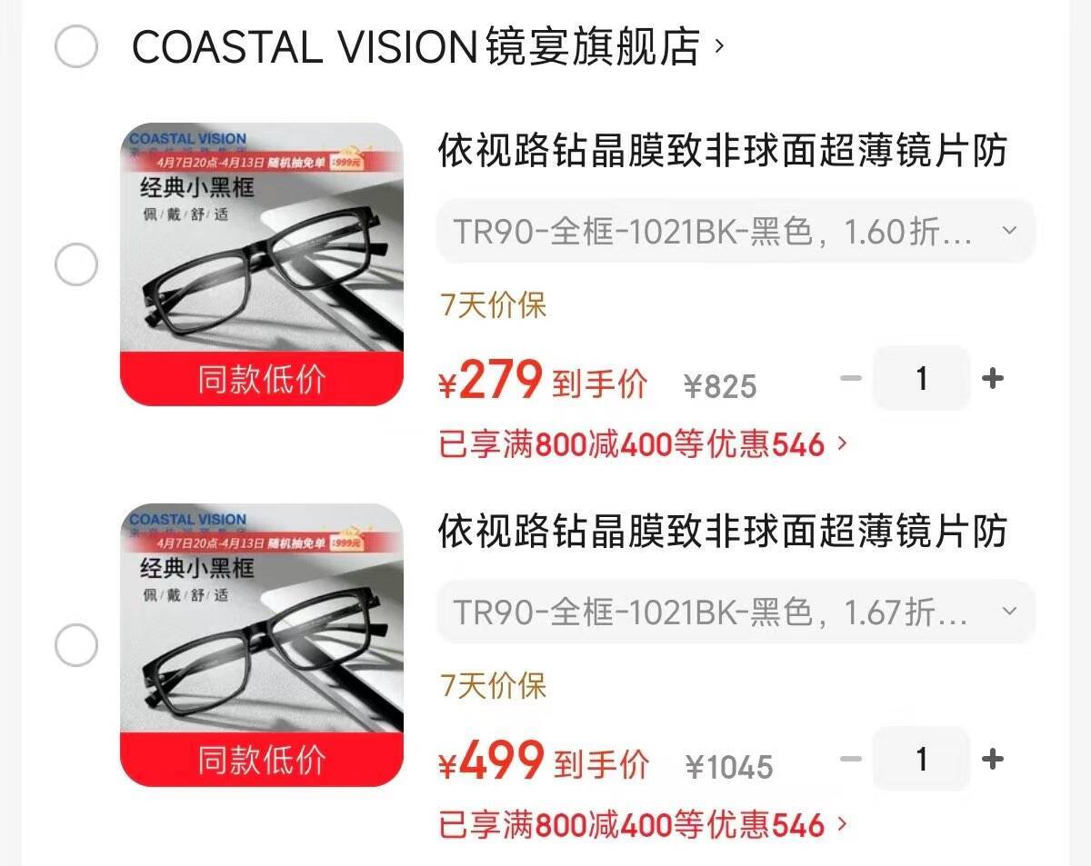 依视路膜致系列镜片:1.60款低至279元、1.67款499元,领400神券立省
