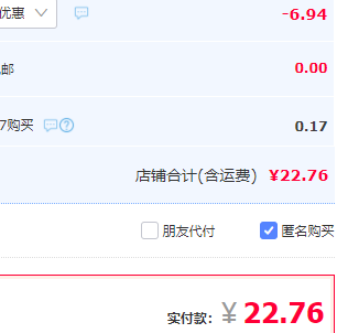 现售价9.9元,领1元优惠券,满3件8折,实付22.76元包邮。