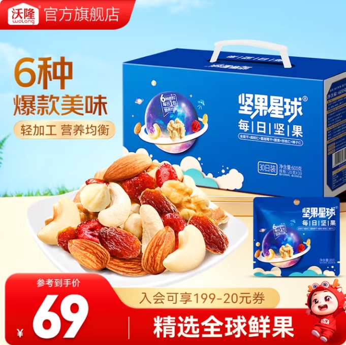 79元包邮!沃隆 坚果星球每日坚果 600g/30袋*2件