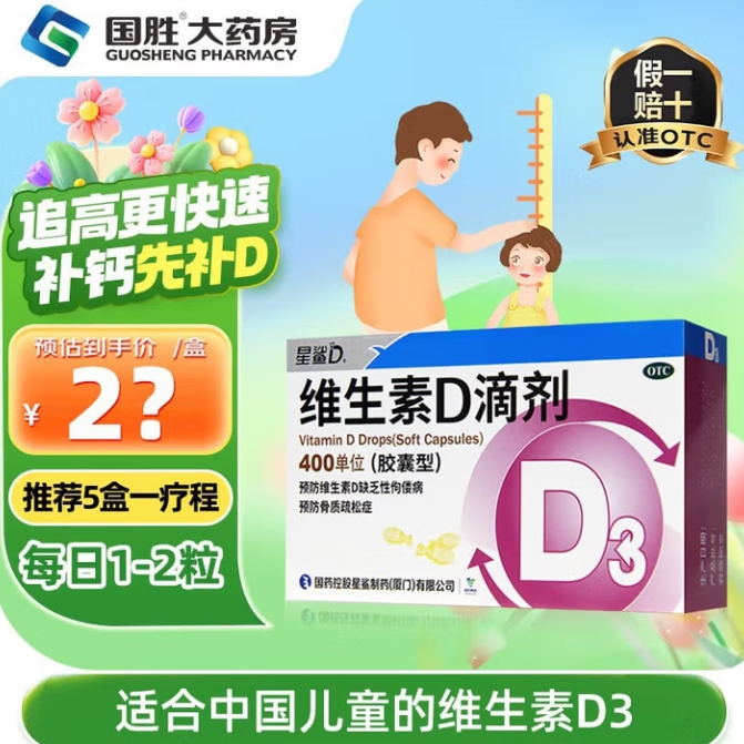 买4件付63.8元!星鲨 维生素D3滴剂36粒/盒