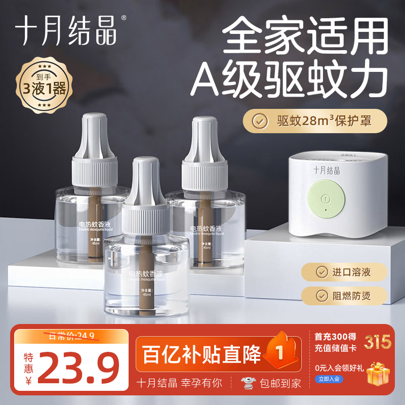 十月结晶电蚊香液3瓶+1器仅需14.9元,Plus会员低至13.71元