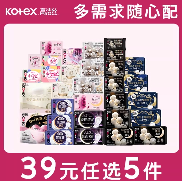 39元任选5件!高洁丝海岛棉臻选纯棉卫生巾