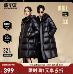 399元包邮!雪中飞黑曜石男女长款鹅绒服 最多充绒321克